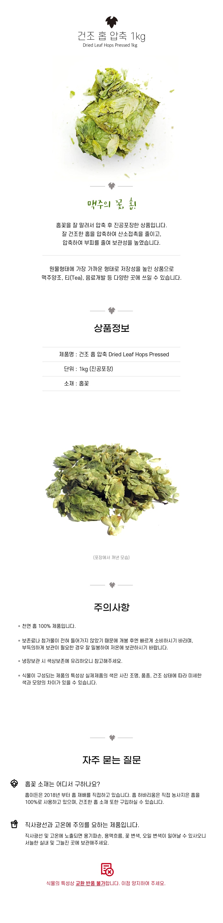 홉꽃을 잘 말려서 압축 후 진공포장한 상품입니다.